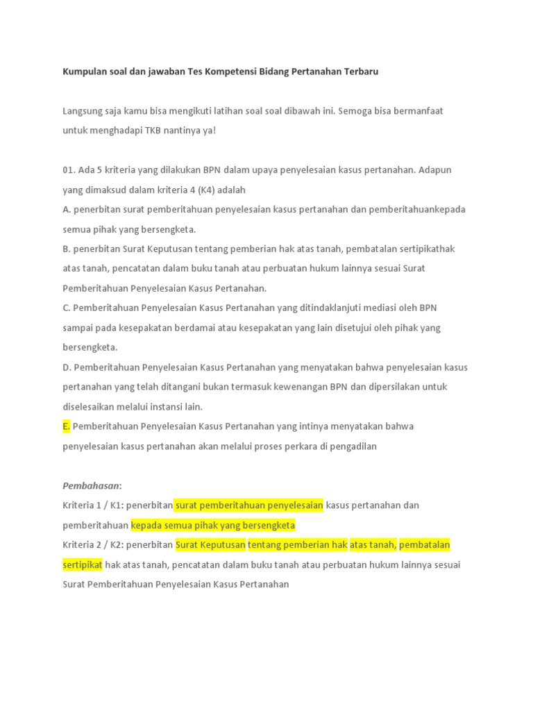 Kumpulan Soal Dan Jawaban Tes Kompetensi Pertanahan