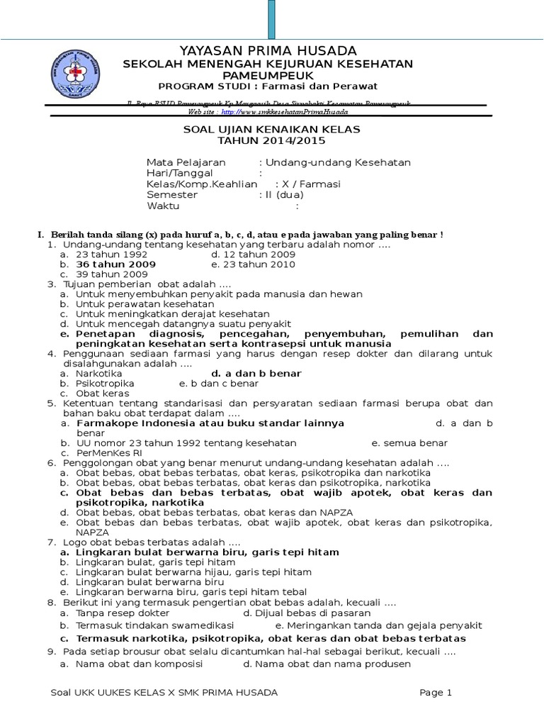 Soal ujian farmasi beserta jawabannya 1. Soal pilihan ganda beserta jawabanya. Sunday november 4 2018 add comment edit.