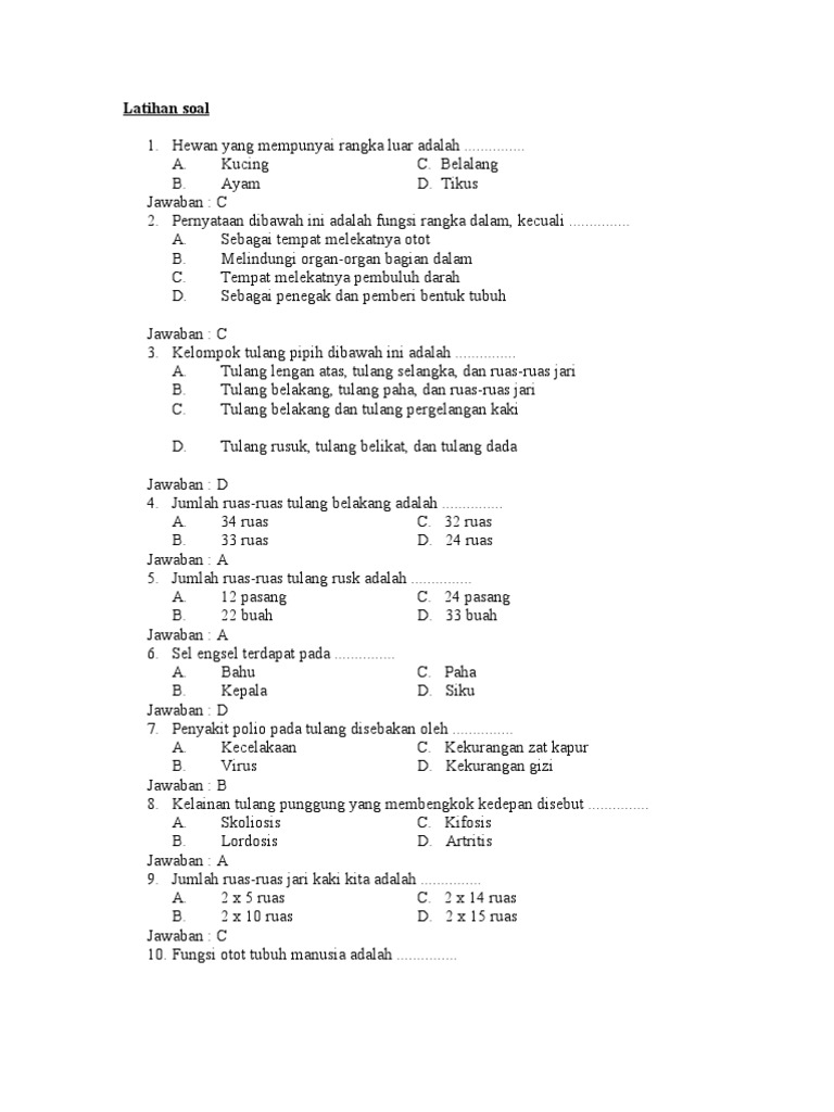 Soal-Soal IPA Tentang Rangka Dan Alat Indera Manusia Soal Organ Tubuh Manusia dan Hewan Soal Mengenai Ekosistem. Soal dan jawaban sistem gerak manusia pilihan ganda 1. Soal tentang organ gerak manusia ini tersusun atas beberapa kompetensi dasar antara lain.