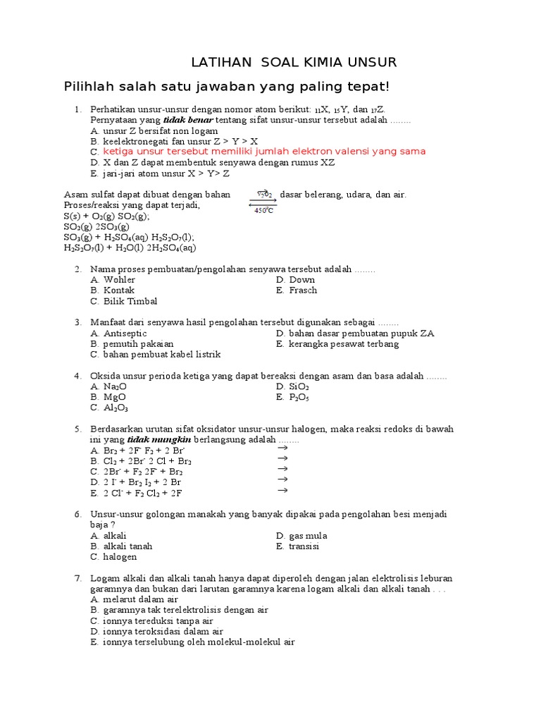Latihan Soal Kimia Unsur Its Surabaya